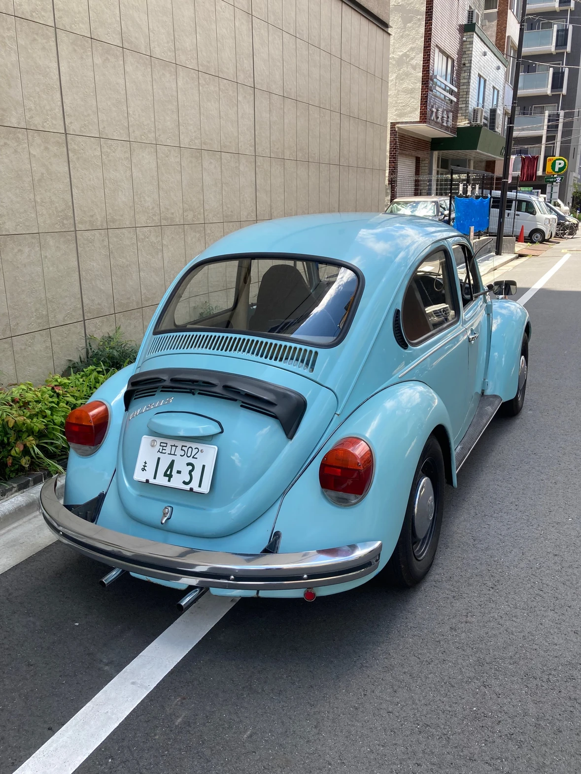 昔ヒッピーだった頃、同じ水色のビートルに乗っていました。個人売買で価格は当時25万。