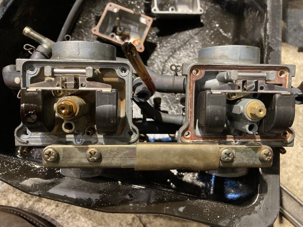 RZ250R その2 2022年2月8日 Last updated : 2025年3月11日 MOTORSTAND キャブをO/H 開けてびっくり、かなりきれい! ガソリン抜いて保管しといたんですね👍 でもオーバーフローが止まらない… フロートバルブは交換かな。